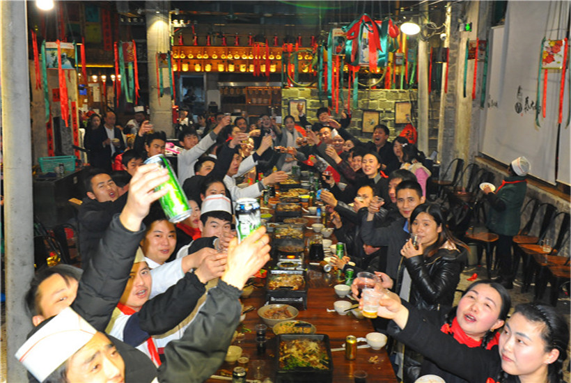 聚餐時間,來!把酒倒?jié)M,干杯!
