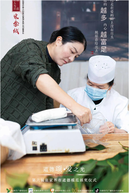 宋金絨,張家界秦大媽餐飲管理有限公司董事長。一個“秦大媽”,溫暖一座城。疫情期間,她帶領員工參與戰疫,共送出免費愛心盒飯八萬九千多份,幫助和溫暖了無數人。十年來,她一邊創業,一邊熱心公益事業,共組織為福利中心、貧困家庭等捐款捐物超過200余萬元。